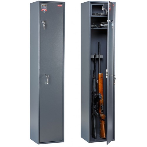 Сейф для хранения огнестрельного оружия оптимальных размеров 1500 * 300 * 285 мм, патронное отделение 200 * 297 * 147 мм. вмещает 3 ствола высотой до 1283 мм. Снабжён ключевыми замками. Покрытие порошковое, красивого графитового цвета. Отверстия для анкерного крепления к стене. Гарантия - 1 год. Купить оружейный шкаф Кречет в Минске можно самовывозом со склада или с доставкой во все регионы Беларуси.